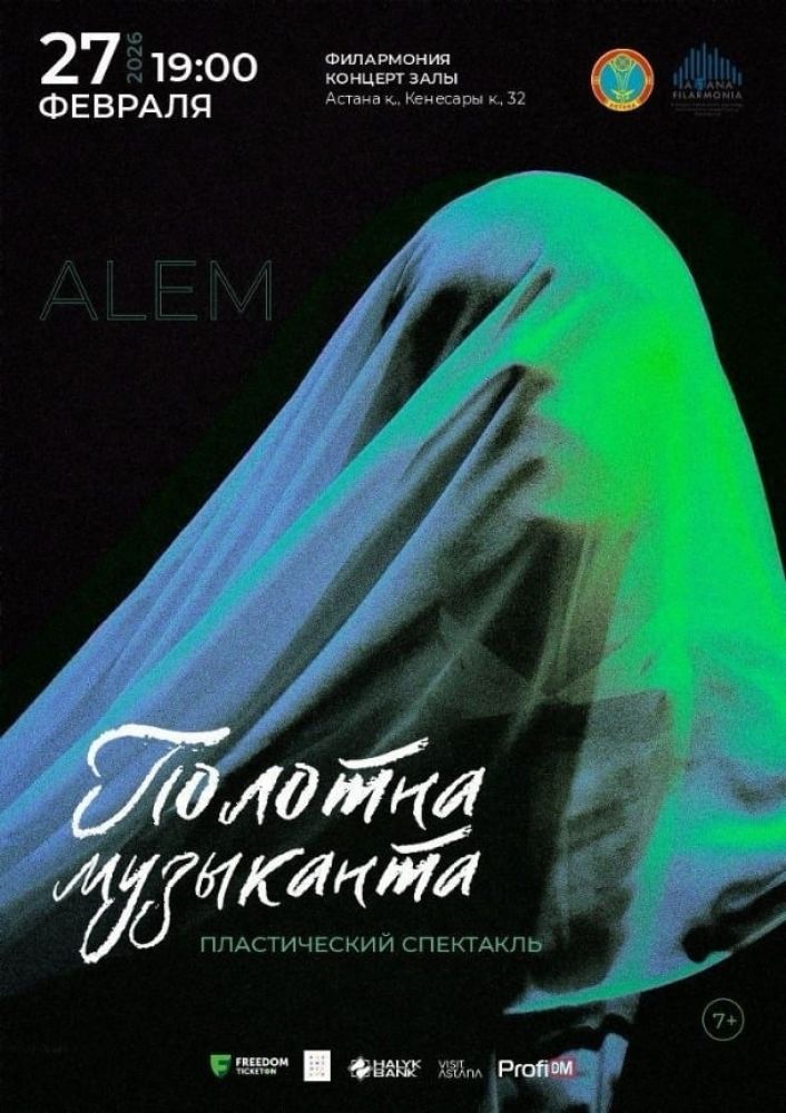 27 февраля 2026 года в 19:00 в концертном зале Государственной академической филармонии имени Еркегали Рахмадиева современный балет «Alem» представит зрителям музыкально-пластический спектакль «Полотна музыканта». Постановка являет собой философское сценическое высказывание о внутреннем пути человека, жизненном выборе и духовном росте.