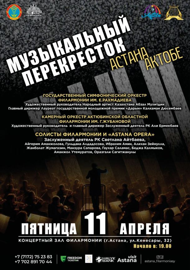 Ынтымақтастық пен мәдени алмасу аясында Ғ. Жұбанова атындағы Ақтөбе облыстық филармониясының камералық оркестрі мен Е. Рахмадиев атындағы мемлекеттік симфониялық оркестрдің бірлескен концерті өтеді.