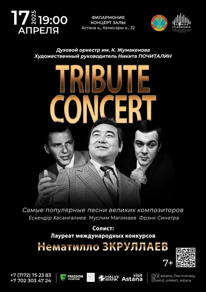 17 сәуір күні сағат 19:00-де филармонияның үлкен залында үрмелі оркестр Мүслім Магомаев, Фрэнк Синатра және Ескендір Хасанғалиевтің құрмет концертін ұсынады.