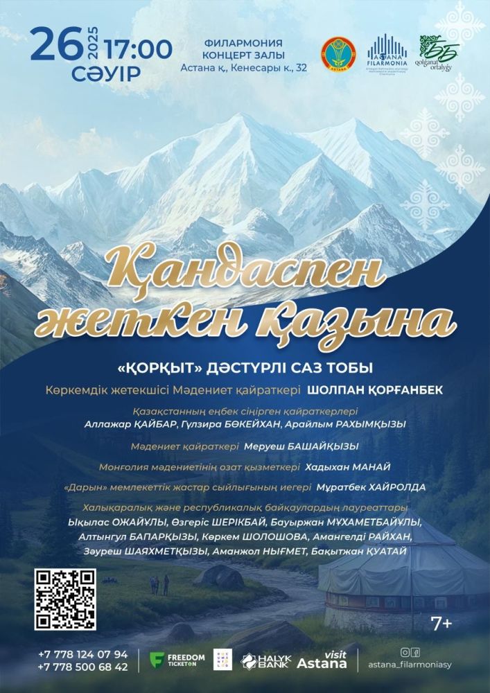 26 сәуір күні Еркеғали Рахмадиев атындағы Мемлекеттік академиялық филармонияның «Қорқыт» этно ансамблі «Қандаспен жеткен қазына» атты концертін ұсынады. Концерт филармонияның концерт залында өтеді. Басталуы 17:00.