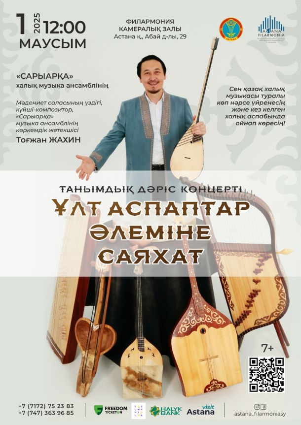 Еркеғали Рахмадиев атындағы Мемлекеттік академиялық филармонияның «Сарыарқа» халық музыка ансамблі 1 маусым күні ерекше танымдық концерт өткізеді. Кішкентай тыңдармандарға арналған «Ұлт аспаптар әлеміне саяхат» атты бұл концерт-дәріс ұлттық өнерге жақындатуды мақсат етеді.