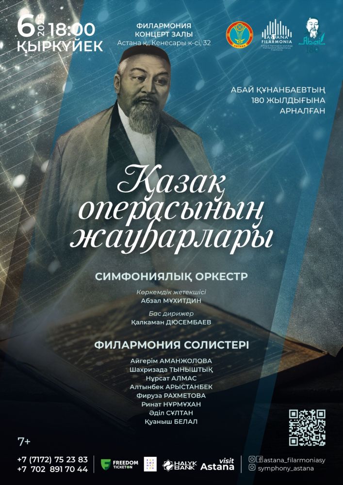 Қазақ классикалық музыкасының жауһарларын филармонияның Симфониялық оркестрі орындайды.