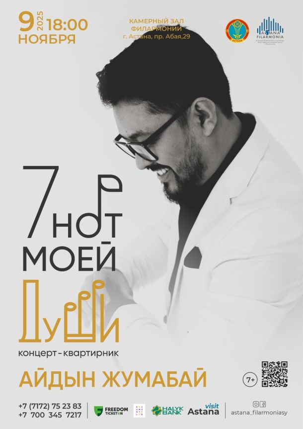 «7 нот моей души» атты концерт-квартирник тыңдармандарды шынайы сырласу мен өнердің жаңа қырларына жетелейді. Жылы атмосферада өтетін кеште әрбір әуен көрермен жүрегіне жетіп, автордың жан дүниесін ашатын болады.