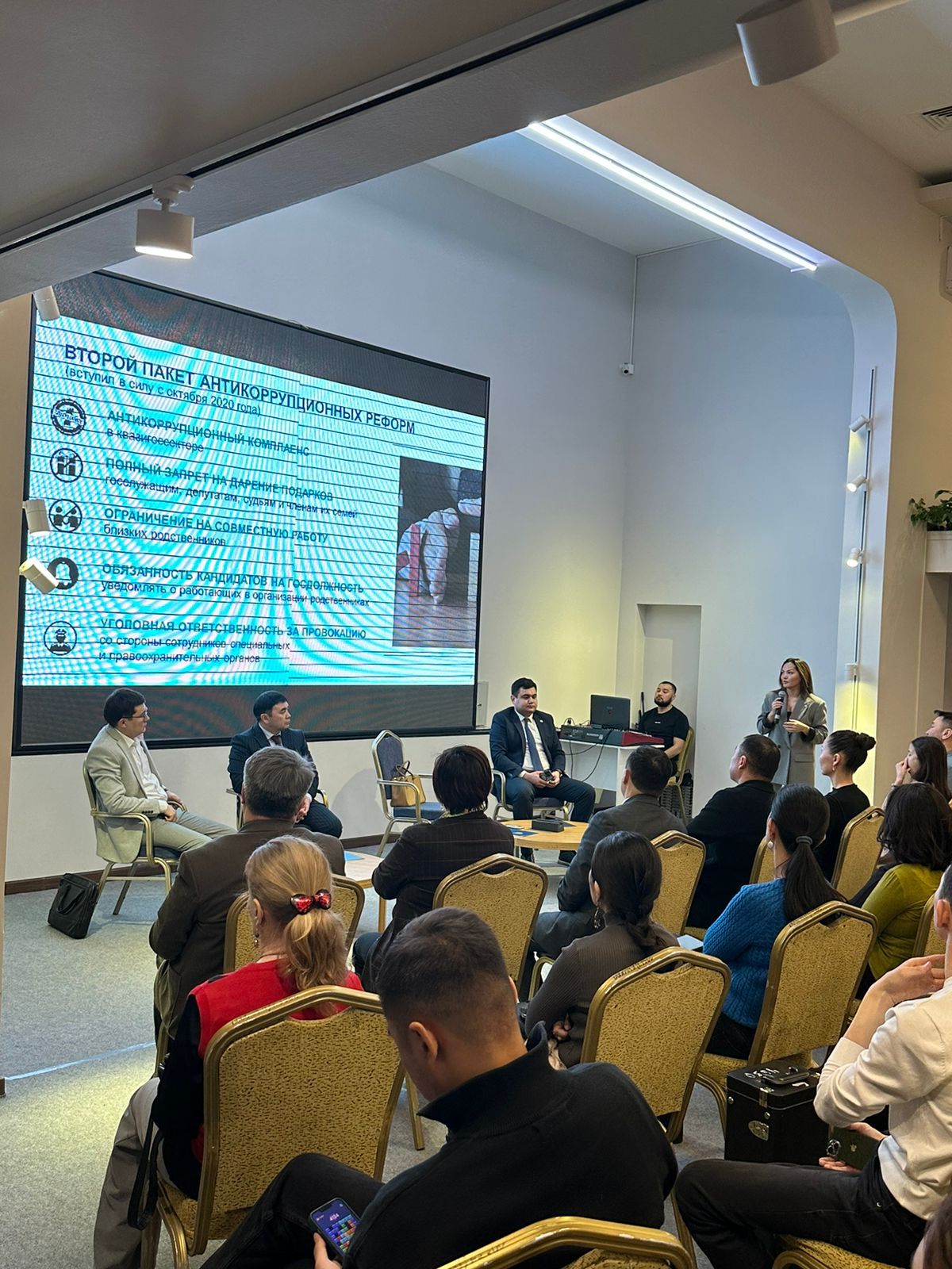 Семинардың негізгі спикері ретінде «Қазақстан Республикасы Сыбайлас жемқорлыққа қарсы іс-қимыл агенттігінің Астана қаласы бойынша департаментінің» аға офицері Гүлназ Слямовна шақырылып, сыбайлас жемқорлыққа қатысты дәріс оқып, слайд көрсетті.